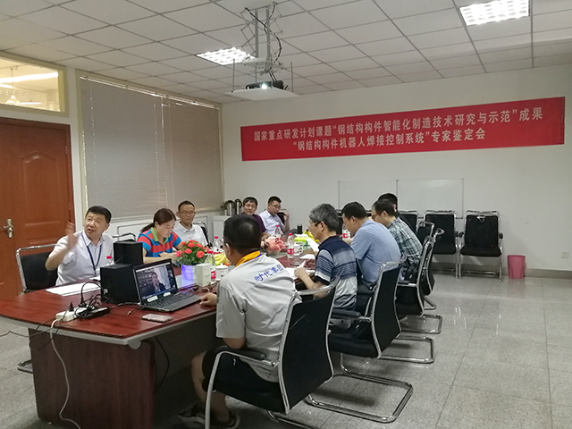 On July 31, 2020, the research group of the Research and Demonstration of Intelligent Manufacturing Technology for Steel Structure Components, a research topic covered by the National Key Research & Development Project, held a scientific and technological achievements appraisal conference in Jinan to carry out technical appraisal on the “Robot Welding Control System for Steel Structure Components”, a research result of foresaid research topic. The experts attend the appraisal conference came from Tsinghua University, Beihang University, Beijing University of Technology, Shandong University and University of Jinan. Yinquan Yu, a nationally renowned survey and design master who is in charge of the “Key Technology and Demonstration of Industrialized Construction Parts and Components Manufacturing” project, and Doctor Zhang Di who is in charge of the “Research and Demonstration of Intelligent Manufacturing Technology for Steel Structure Components” project attended the conference. Beijing TIME Technologies Co., Ltd. is the undertaking unit of the research task “Robot Welding Control System for Steel Structure Components”, and task leader Yunjie Bao and the members of the research team reported the technical results to the expert panel. The appraisal expert panel listened to the report, watched the live demonstration, reviewed the technical data, and formed expert opinions after discussion. The expert panel agreed that the robot welding control system for steel structural components is at the leading level in China, with welding seam positioning and arc tracking accuracy reach the international advanced level. The experts unanimously agreed that the scientific and technological achievements passed the appraisal.