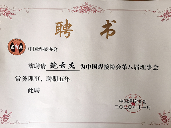 中國(guó)焊接協(xié)會(huì)第八屆一次理事會(huì)暨八屆一次常務(wù)理事會(huì),中國(guó)焊接協(xié)會(huì)第八屆理事會(huì)監(jiān)事會(huì)第一次會(huì)議于2021年4月17日上午在浙江省寧波市召開(kāi)。會(huì)議選舉產(chǎn)生了第八屆理事會(huì)主要負(fù)責(zé)人、常務(wù)理事及第八屆理事會(huì)監(jiān)事會(huì)監(jiān)事長(zhǎng),同時(shí)頒發(fā)了第八屆理事會(huì)各級(jí)領(lǐng)導(dǎo)、單位的資格證書(shū)及個(gè)人聘書(shū)。會(huì)議期間還組織召開(kāi)了中國(guó)焊接行業(yè)高質(zhì)量發(fā)展論壇。在本次會(huì)議中,北京時(shí)代科技股份有限公司當(dāng)選為中國(guó)焊接協(xié)會(huì)常務(wù)理事單位,公司總裁鮑云杰當(dāng)選為中國(guó)焊接協(xié)會(huì)第八屆理事會(huì)常務(wù)理事。
