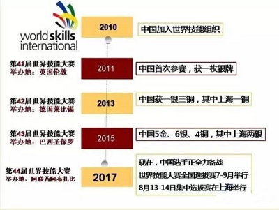 2017年10月,第44屆世界技能大賽將在阿聯(lián)酋阿布扎比舉行,中國代表隊擬參賽項目共45個。2016年7月至9月,第44屆世界技能大賽全國選拔賽全面拉開帷幕。8月13日至14日,將在上海世博展覽館1號館舉行全國選拔賽集中選拔賽!