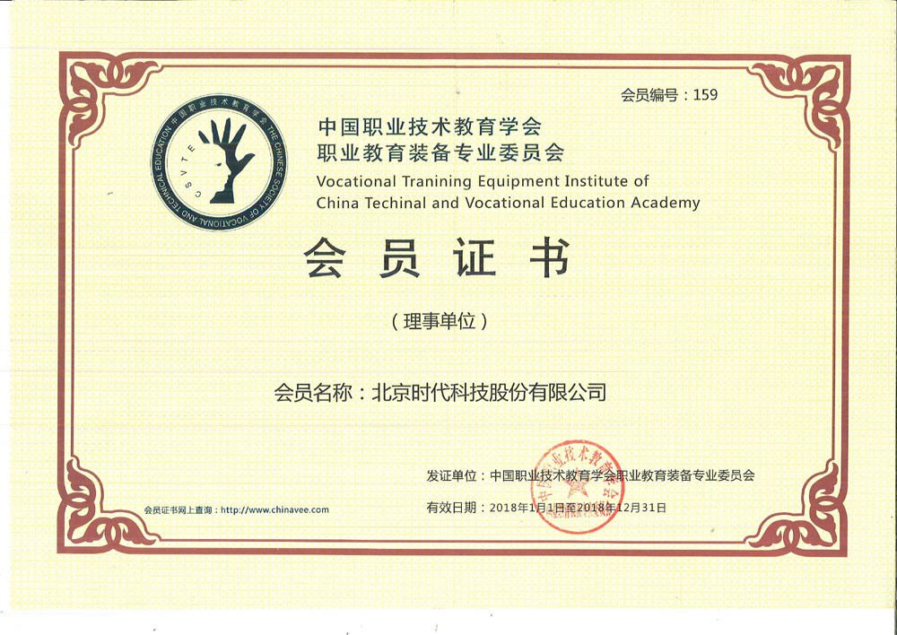 2018-01 中國職業技術教育學會職業教育裝備專業委員會會員證書 中國職業技術教育學會