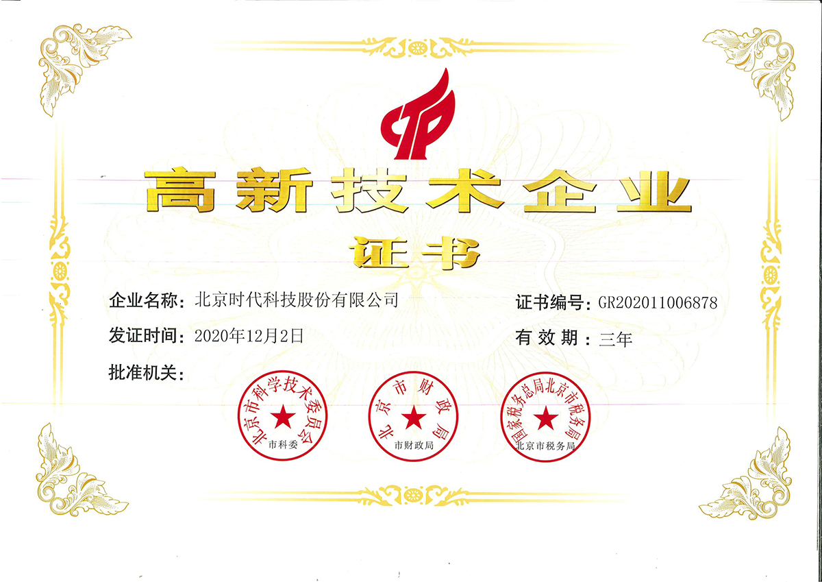 2020-12 高新技術企業證書 北京市科學技術委員會