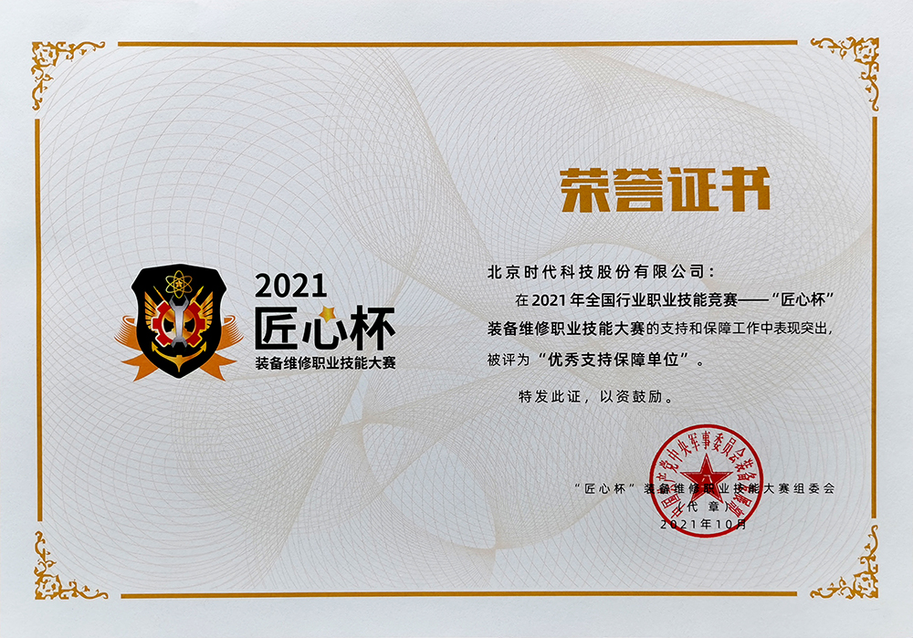 2021-12 2021年“匠心杯”裝備維修職業技能大賽證書 中國共產黨中央軍事委員會裝備發展部