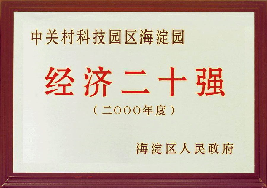 2002-04 中關村科技園區 2000 年度經濟二十強企業 海淀區人民政府
