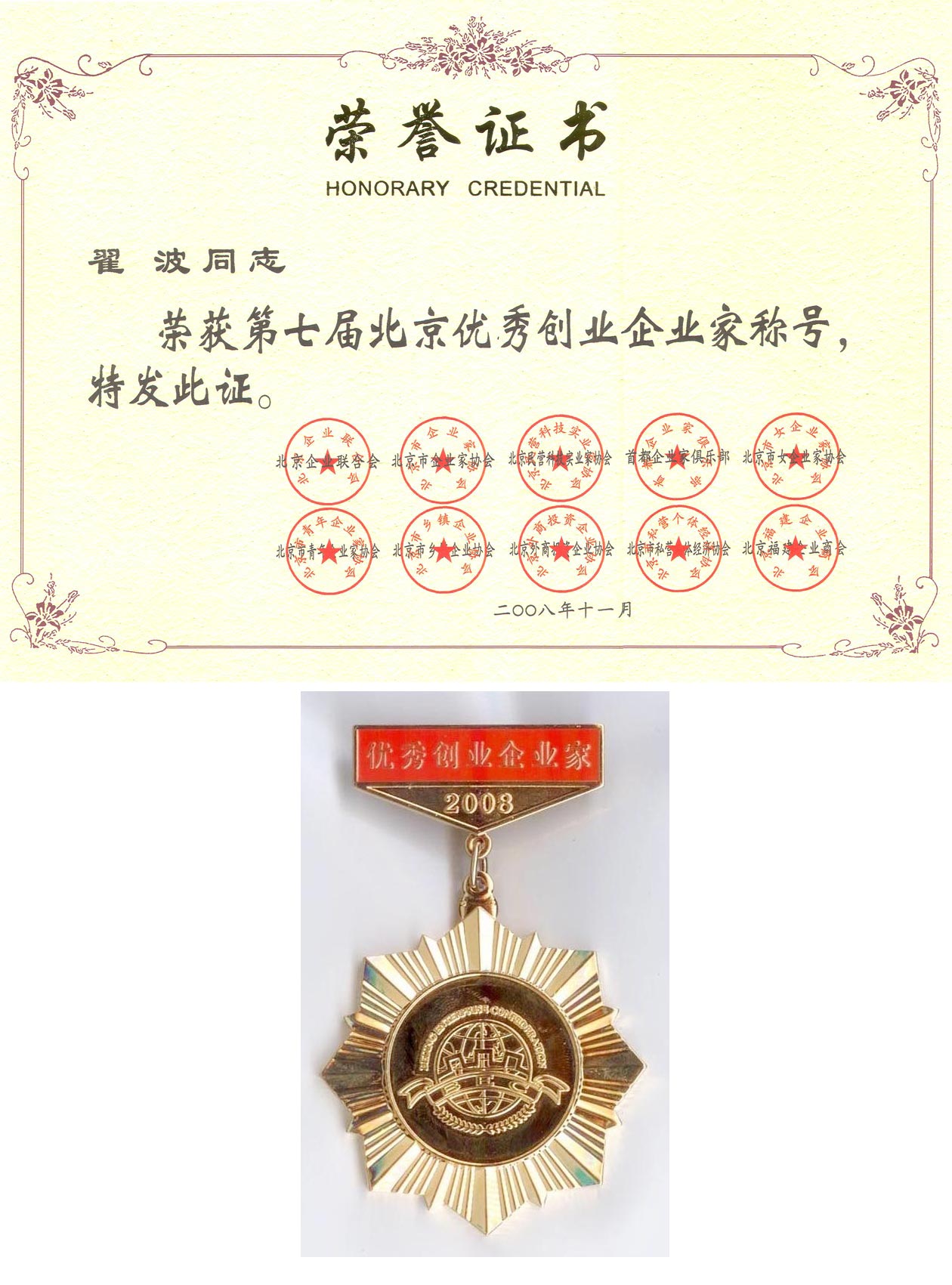 2008-11 第七屆北京優秀創業企業家 北京企業聯合會、北京企業家協會