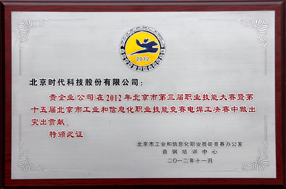 2012-11 北京市第三屆職業技能大賽 突出貢獻獎 北京市工業和信息化職業技能競賽辦公室