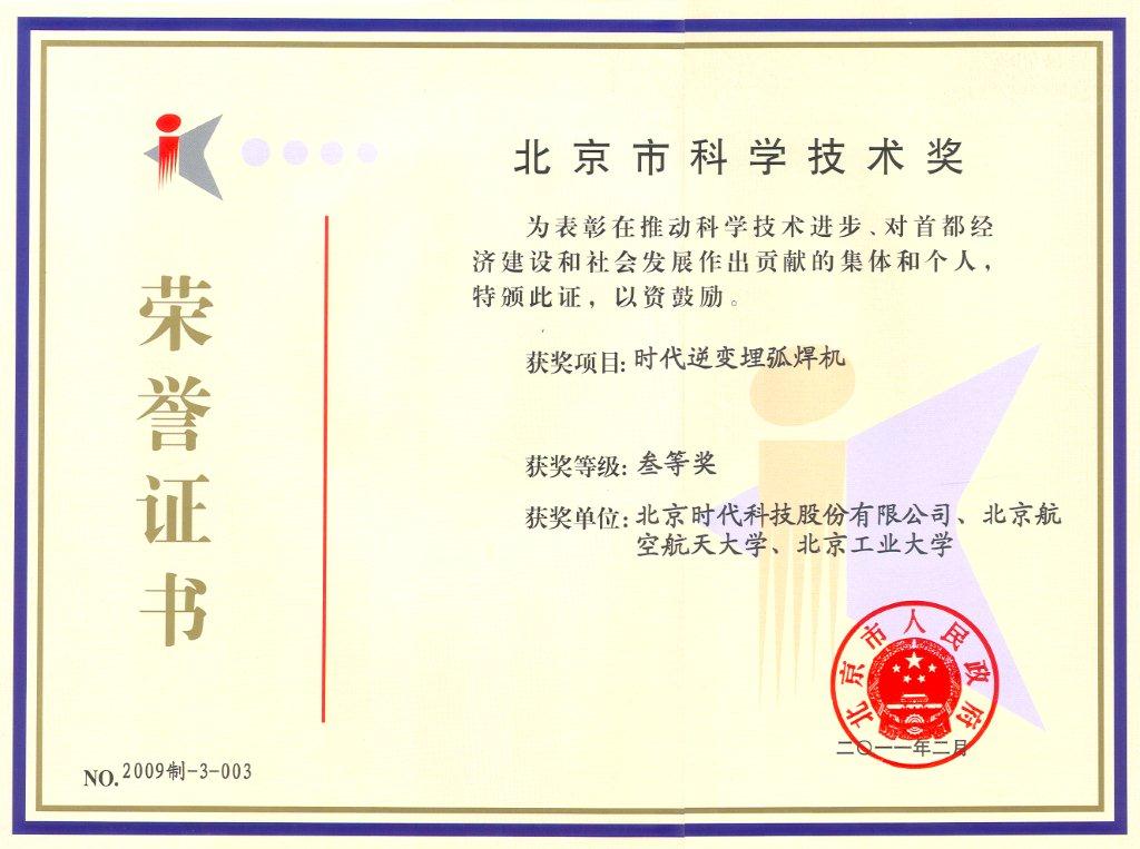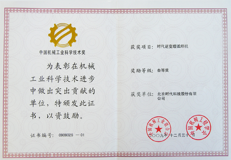 2009-12 中國機械工業科學技術獎 時代逆變埋弧焊機 中國機械工程學會