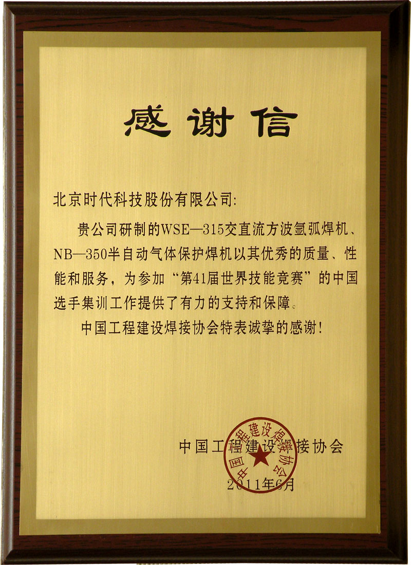 2011-06 參與世界技能大賽感謝信 中國工程建設焊接協會