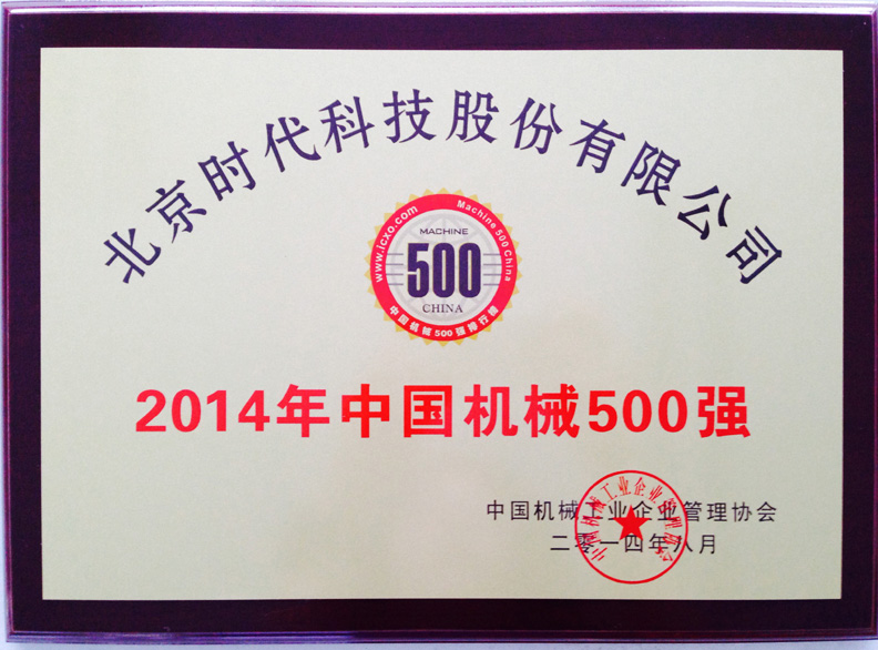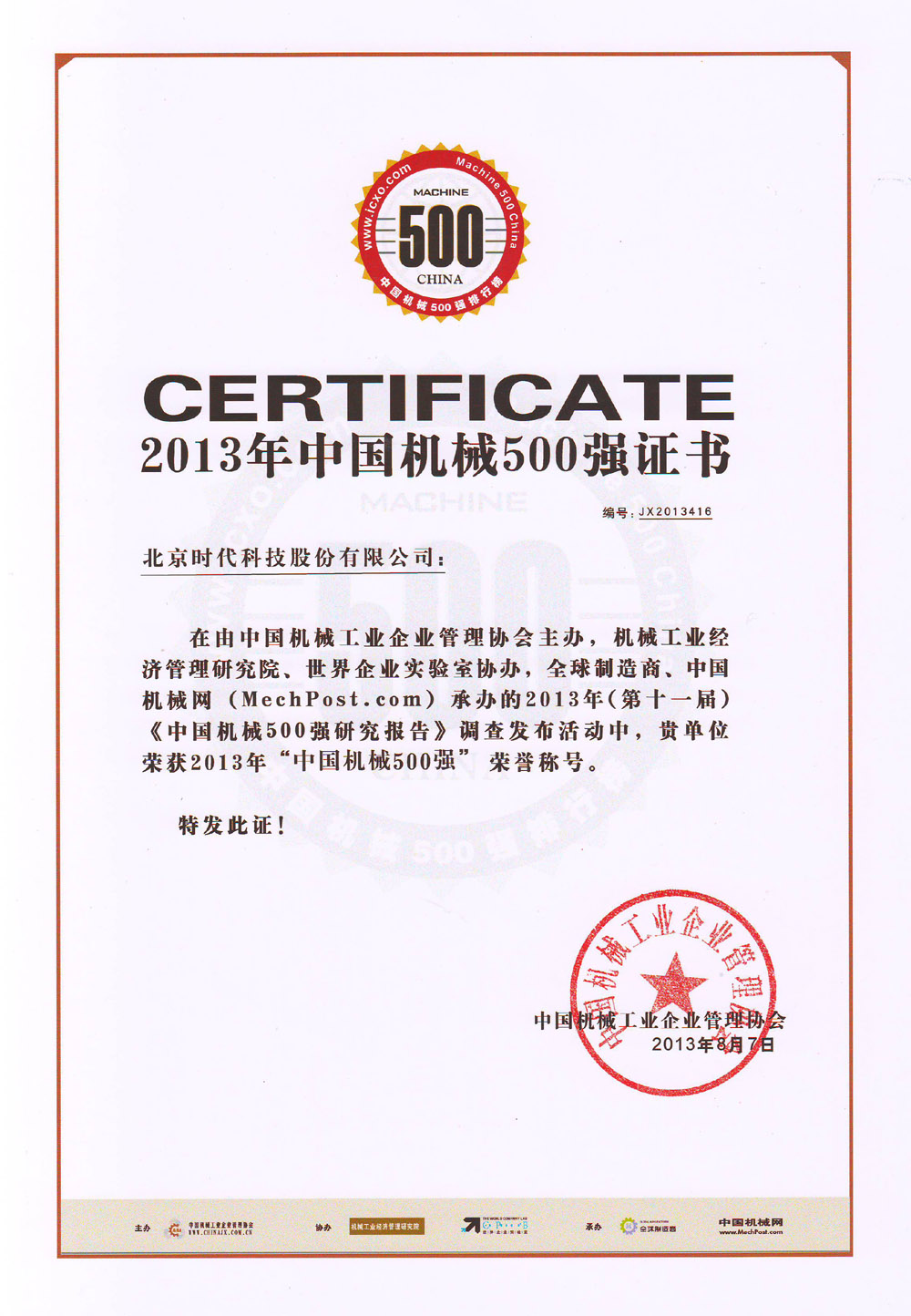 2013-08 中國機械500強 證書 中國機械工業企業管理協會