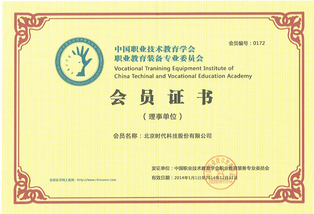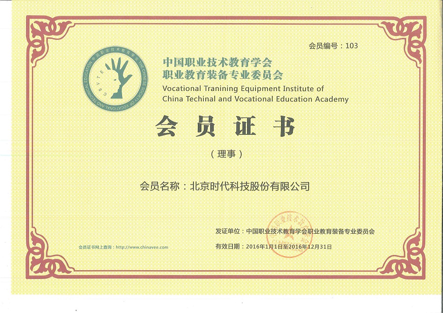 2016-03 中國職業技術教育學會職業教育裝備專業委員會會員證書 中國職業技術教育學會職業教育裝備專業委員會
