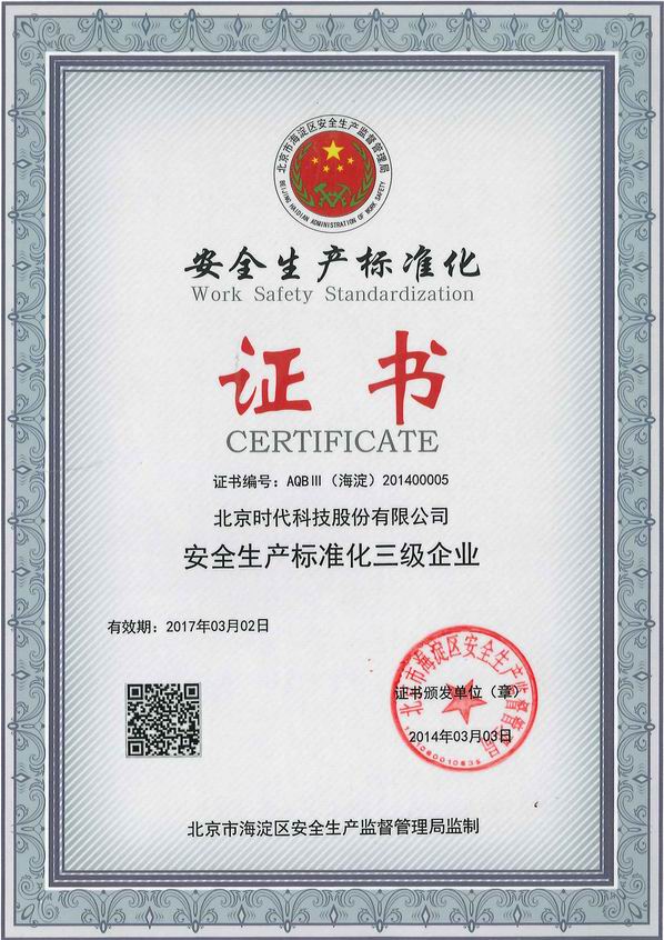 2014-04 安全生產標準化證書 北京市海淀區安全生產監督管理局