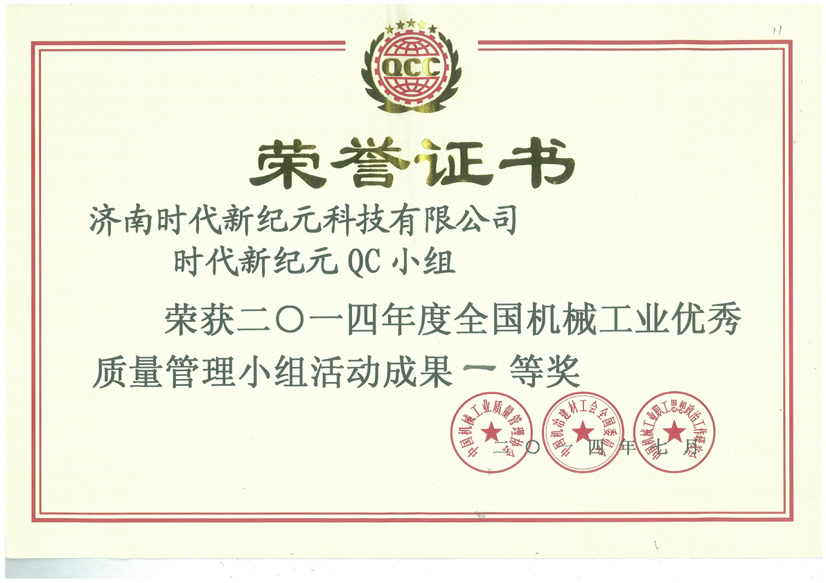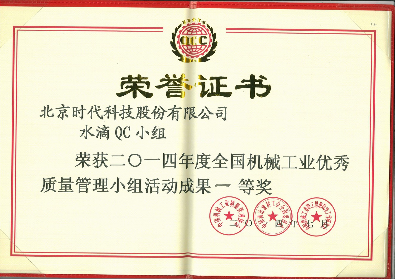 2014-08 2014年全國機械工業優秀質量管理小組獎 一等獎 中國機械工業質量管理協會