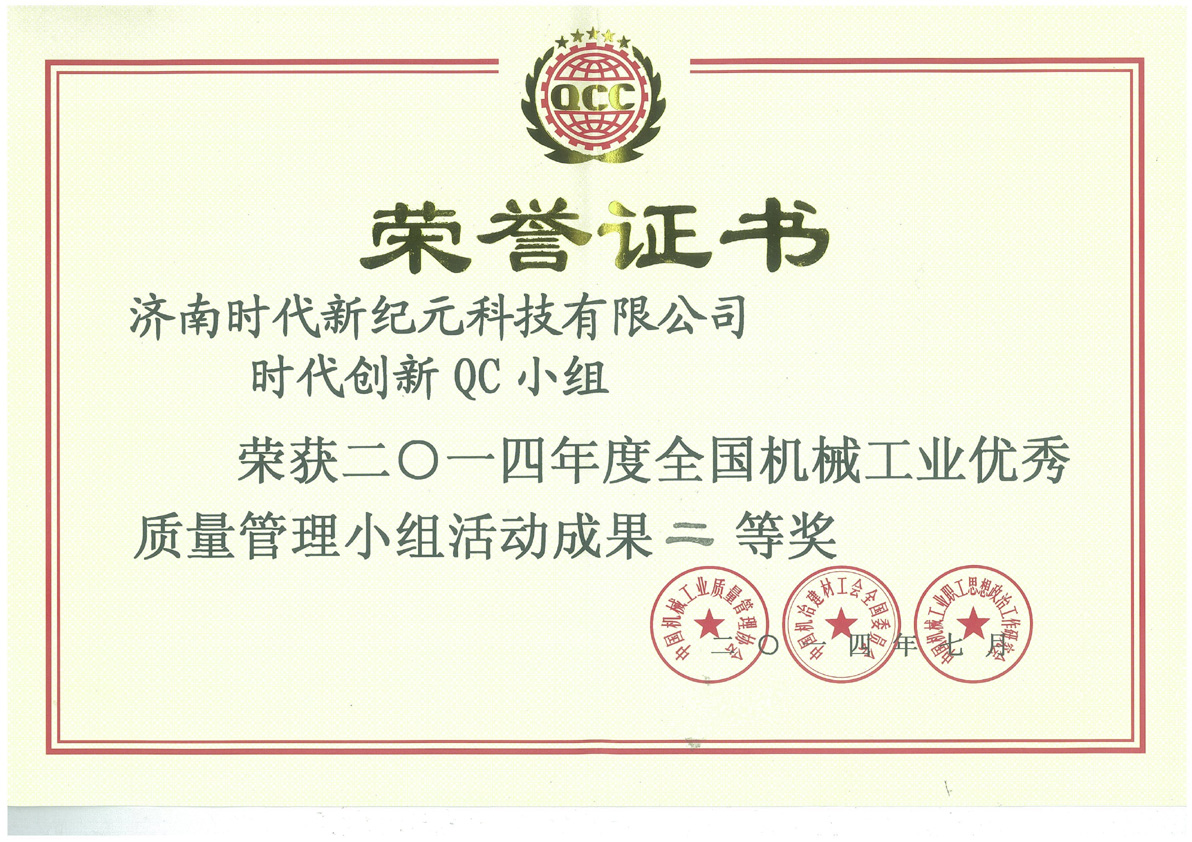 2014-08 2014年全國機械工業優秀質量管理小組獎 二等獎 中國機械工業質量管理協會