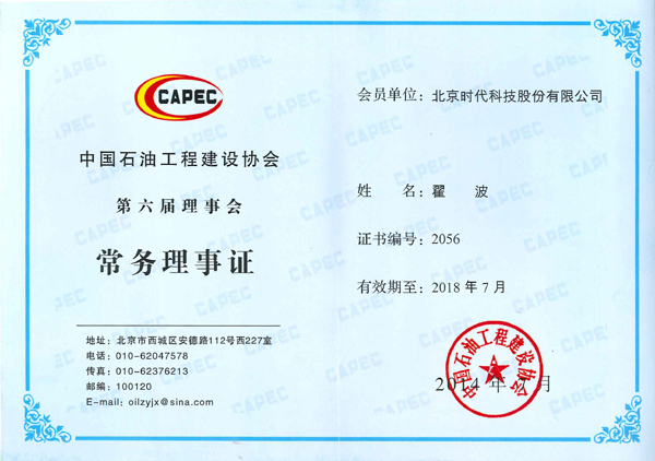 2014-08 中國石油工程建設協會常務理事證 中國石油工程建設協會