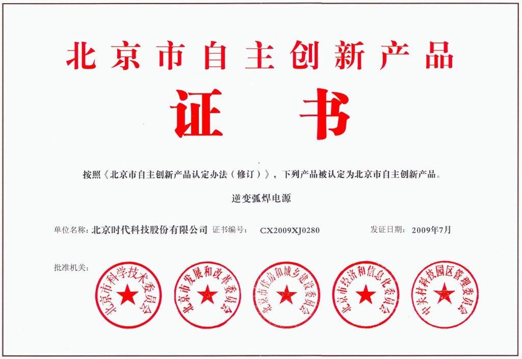2009-07 北京市自主創新產品(逆變弧焊電源) 北京市科學技術委員會