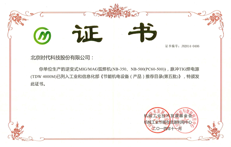 2015-01 工業和信息部《節能機電設備推薦目錄》證書 機械工業技術發展基金會