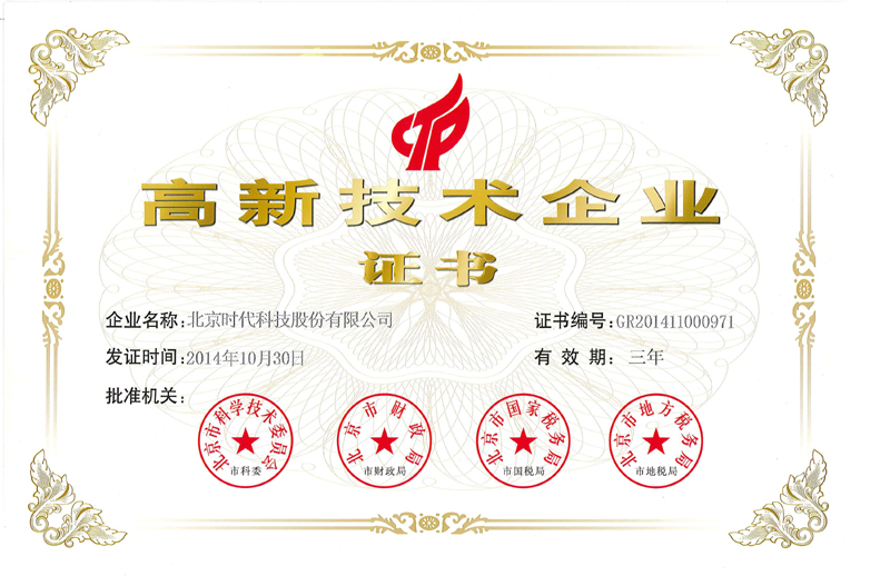 2015-01 高新技術企業 證書 北京市科學技術委員會