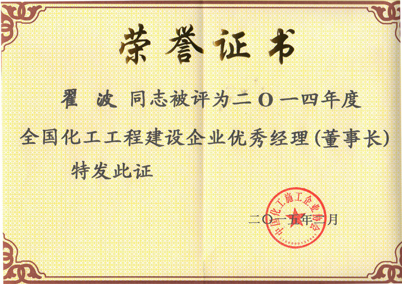 2015-02 2014年度全國化工工程建設單位 優秀經理(董事長) 中國化工施工企業協會