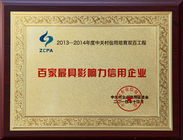 2014-12 百家最具影響力信用企業 中關村企業信用促進會