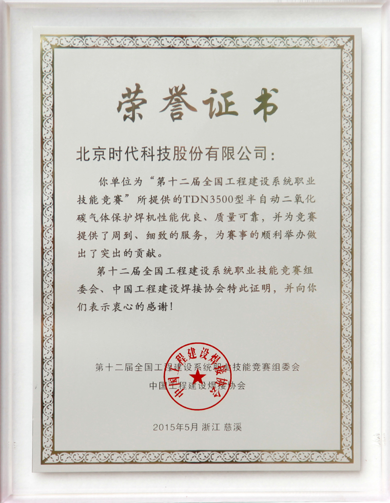 2015-05 第十二屆全國工程建設系統職業技能競賽榮譽證書 中國工程建設焊接協會