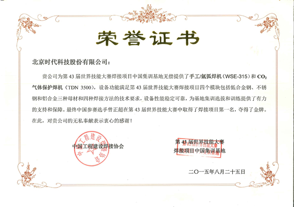 2015-08 第43屆世界焊接大賽焊接項目集訓用機 中國工程建設焊接協會