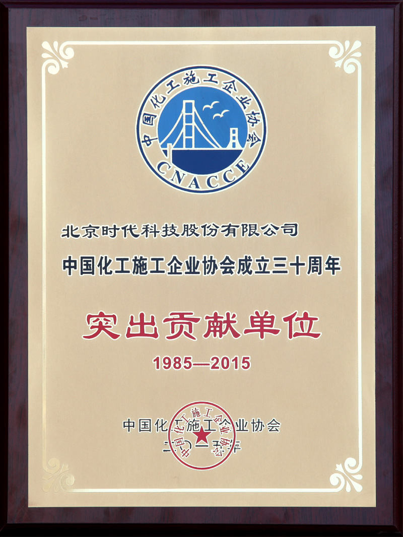 2015-10 中國化工施工企業協會成立三十周年 突出貢獻單位 中國化工施工企業協會