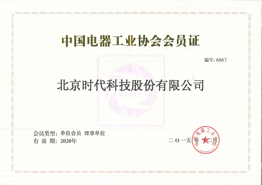 2016-03 中國電器工業協會會員證 中國電器工業協會