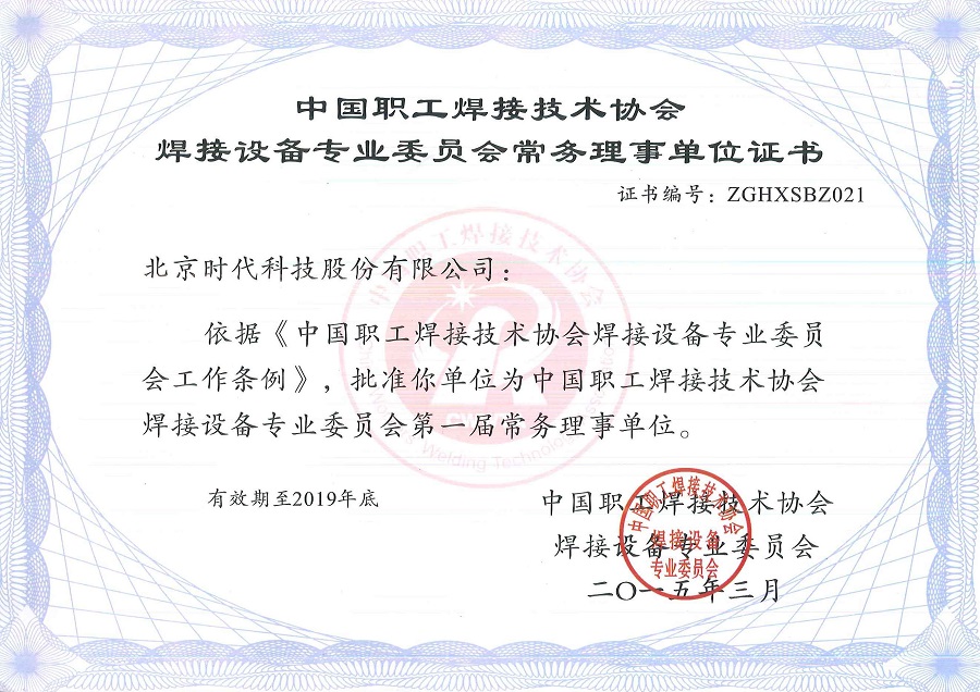 2016-04 中國職工焊接技術協會 焊接設備專業委員會常務理事單位證書 中國職工焊接技術協會 焊接設備專業委員會