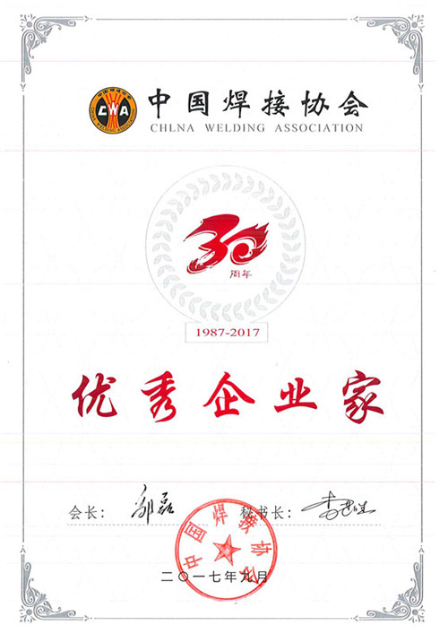 2017-09 中國焊接協會 優秀企業家 中國焊接協會