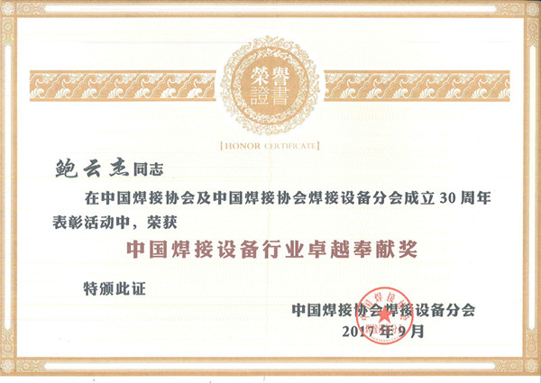 2017-09 中國焊接設備行業卓越奉獻獎 中國焊接協會焊接設備分會